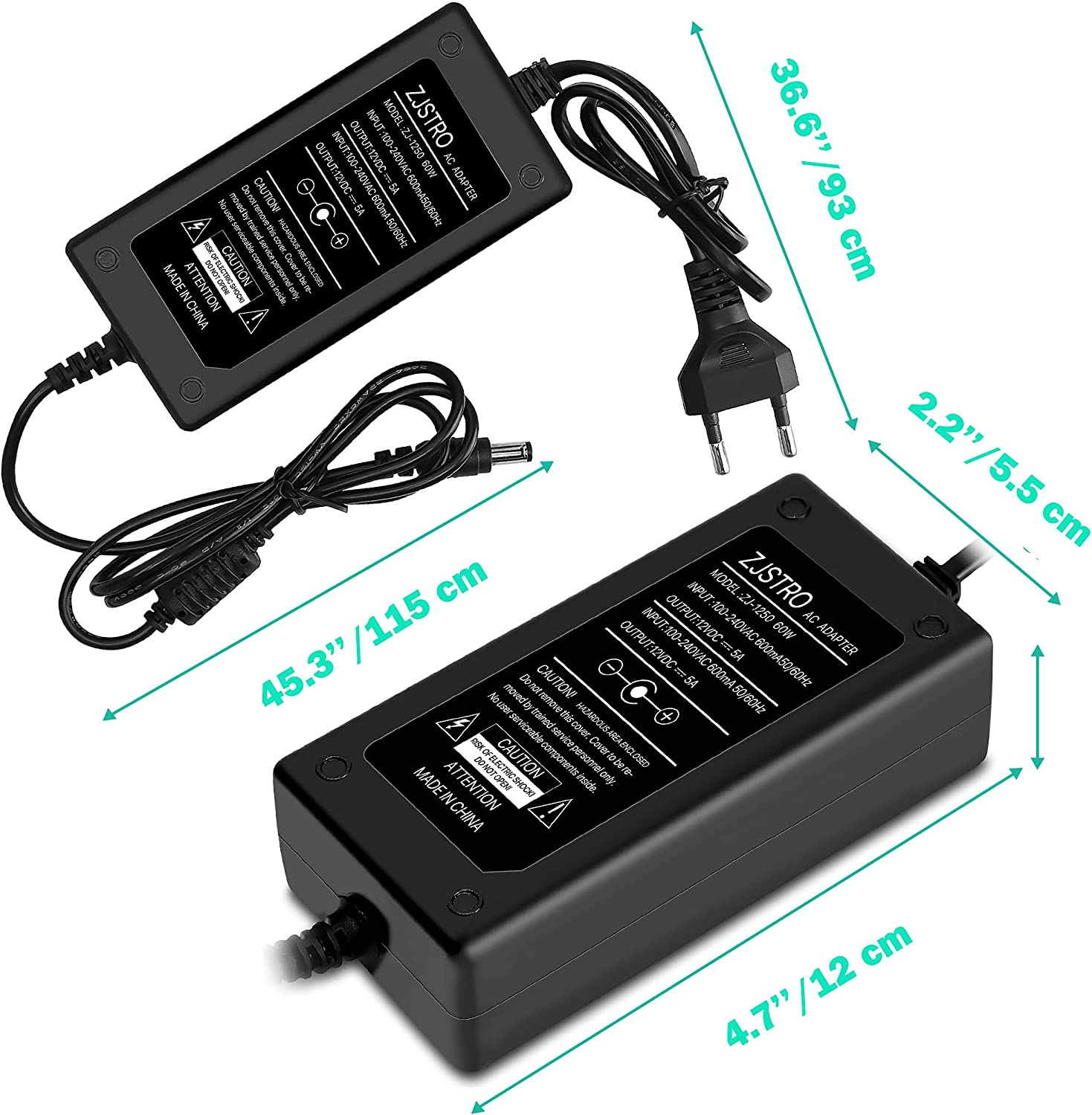 - Dimensions: 4.5 x 2.2 x 1.3 inches, cable length: approx. 140cm, output adapter socket size: 5.5mm x 2.5mm, compatible with 5.5mm x 2.1mm