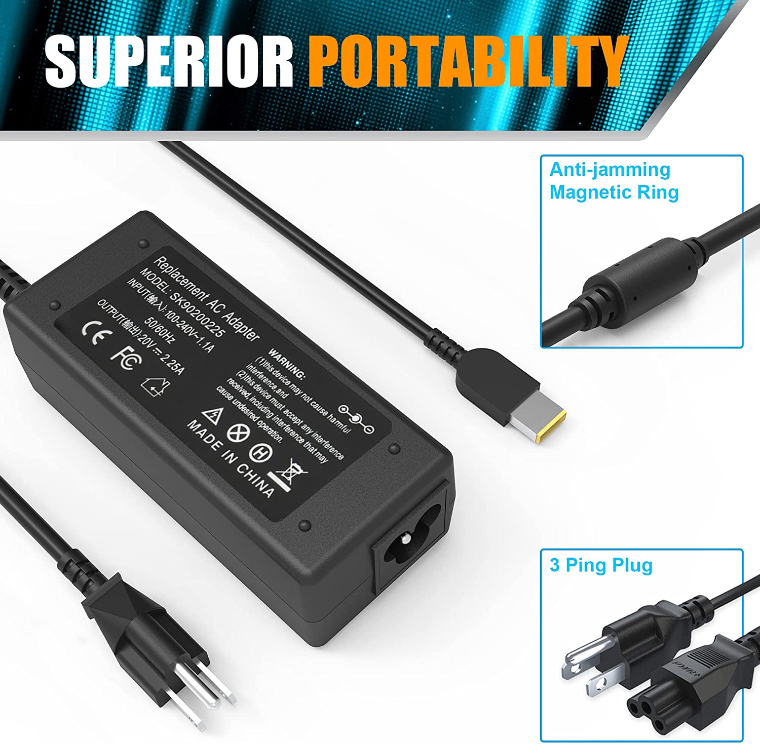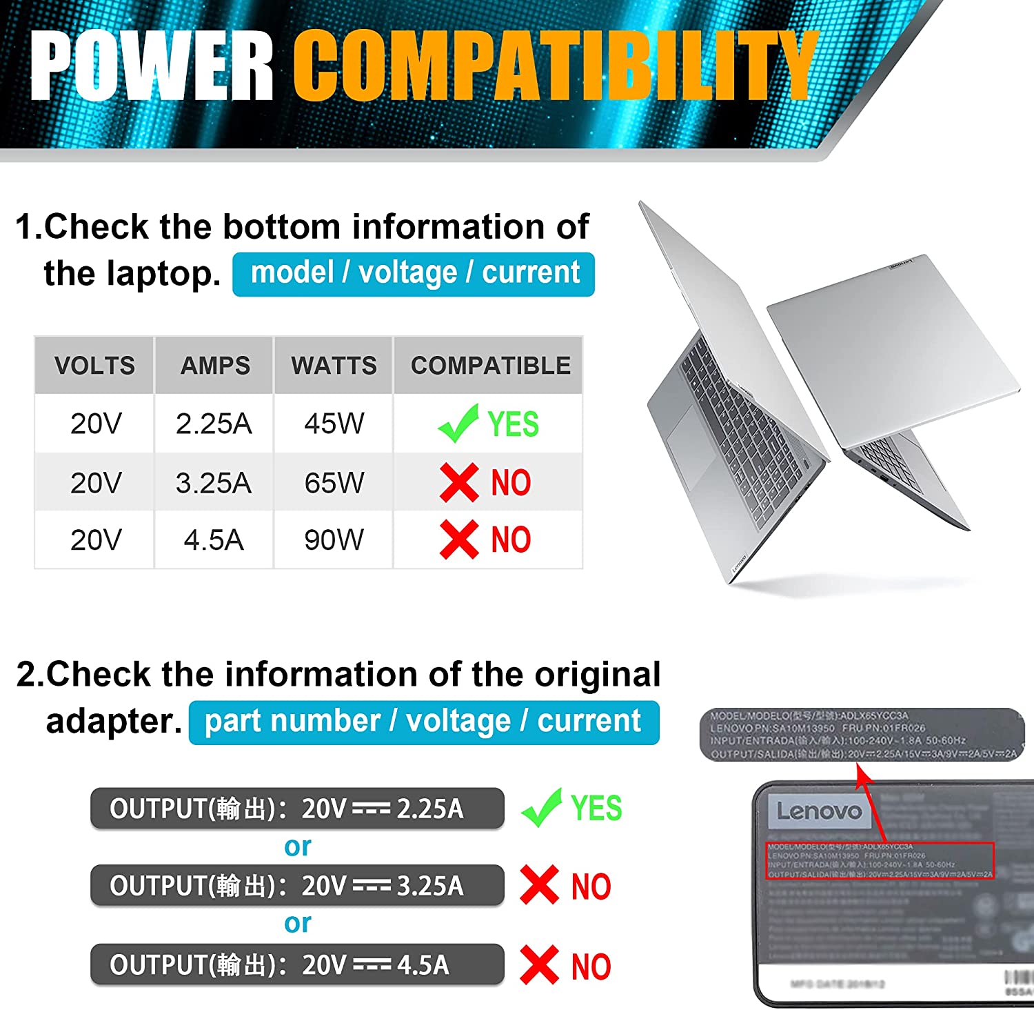 - Output Max – 20V 3.25A 65W (compatible with 20V 2.25A 45W) Input Volt Range: 100-240V / Connector: Square Tip.