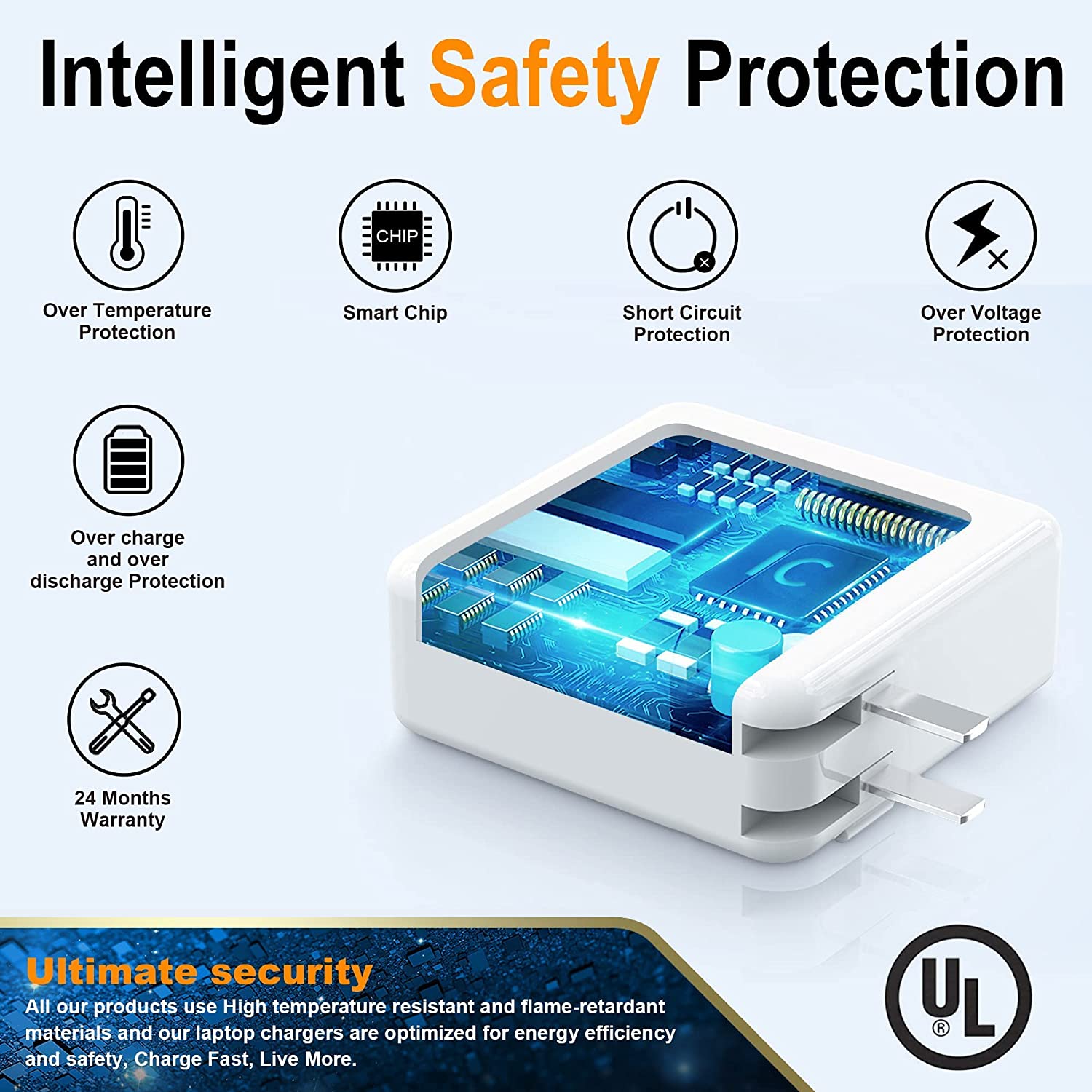 - ④ All of our product lines are put through rigorous quality control procedures to ensure safe, including protection against short circuiting overvoltage, overcurrent, and internal overheating. We guarantee our products will charge your device as efficiently as the original charger, or any other replacement.