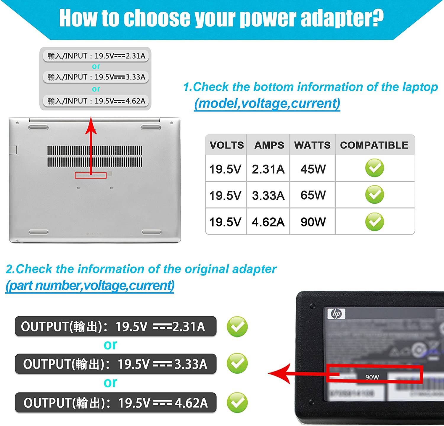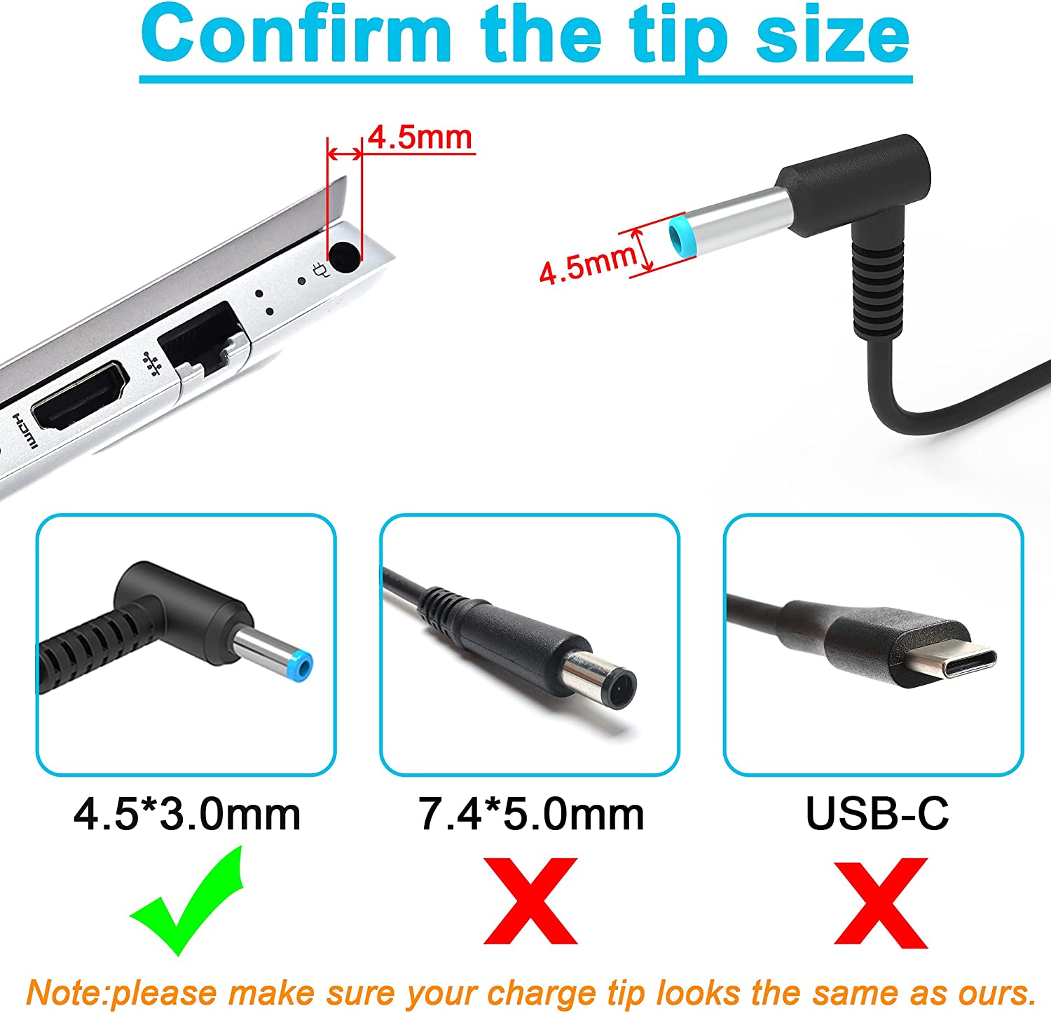 - 💯Input:100~240V~1.8A 50/60Hz; Output:19.5V-4.62A-90W/65W ;Connecter size: 4.5mm*3.0mm Blue Tip with central smart-pin.