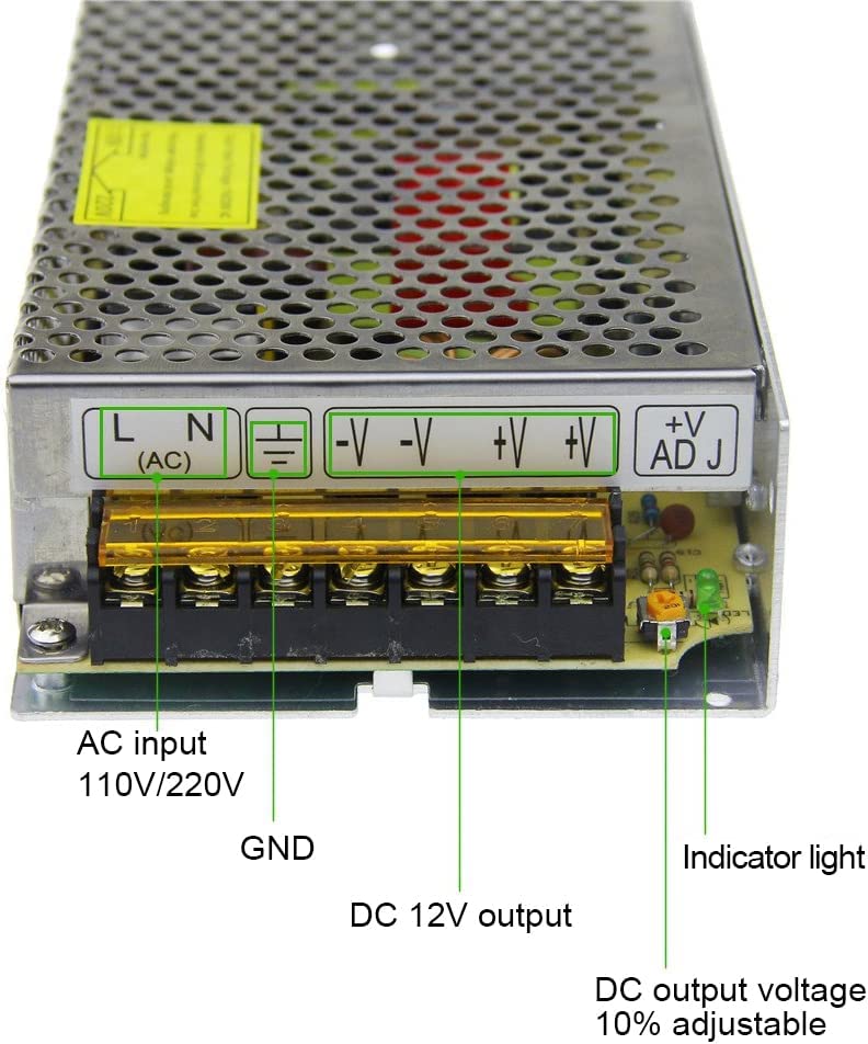 - Great for LED Strips, 3D Printer, ham radio transceiver, CCTV cameras ,car subwoofer amp, audio amplifier, wireless router, ADSL Cats, HUB, audio/ video power supply. Indoor use only!