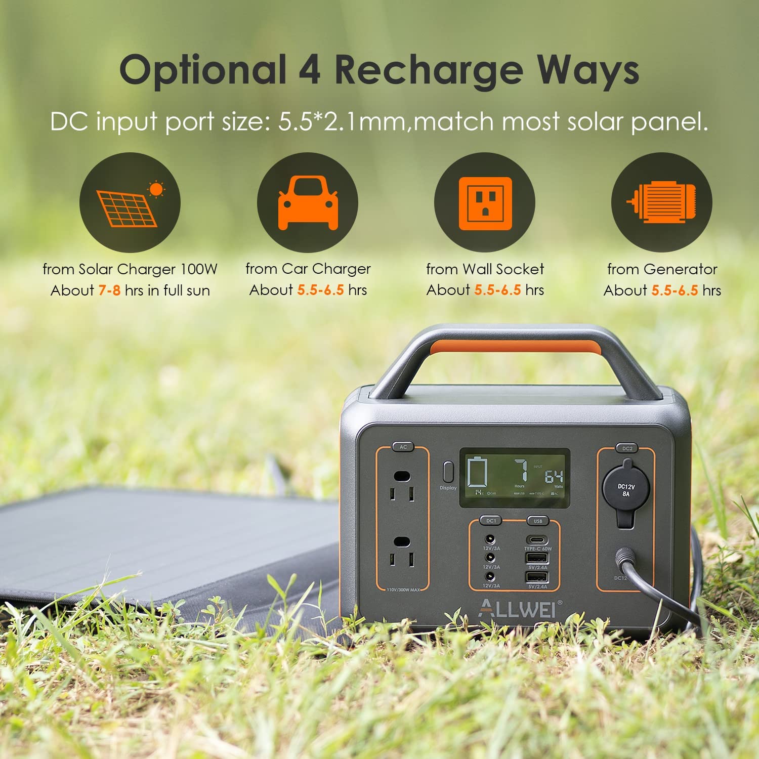 • 【Multiple Ways to Recharge】ALLWEI Solar Power Generator works with MPPT controller, ALLWEI solar panels are available and support fast recharging for power station while traveling or camping (solar panels SOLD SEPARATELY ). It’s also support charging from AC wall outlet and car lighter plug.
