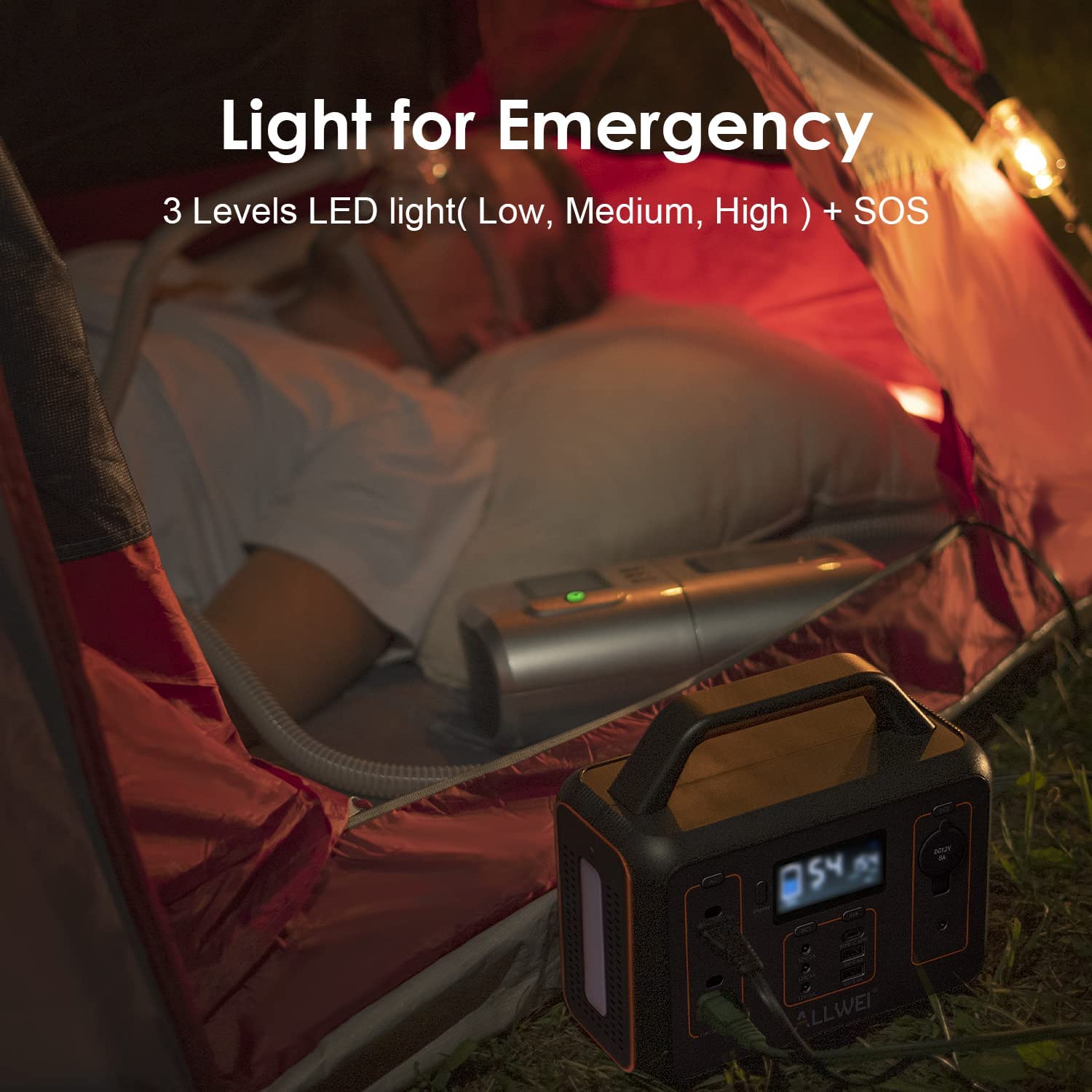 • 【Powerful capacity】2 * AC pure sine wave outlets, Regulated car cigarette lighter plug care for mini cooler, 3 * DC ports, 1 * USB-C wih fast charging 60W, 2 * USB-A, 1*LED camping light which support four modes,Tent light , Explore Light, Reading Light and SOS Emergency Rescue. The power station can recharge itself and power up to 9 devices (e.g. for Drones, kindles, iPhones, iPads, Macbook, Cameras, etc.) Great camping essentials accessories for CPAP machine.RV. Hiking.