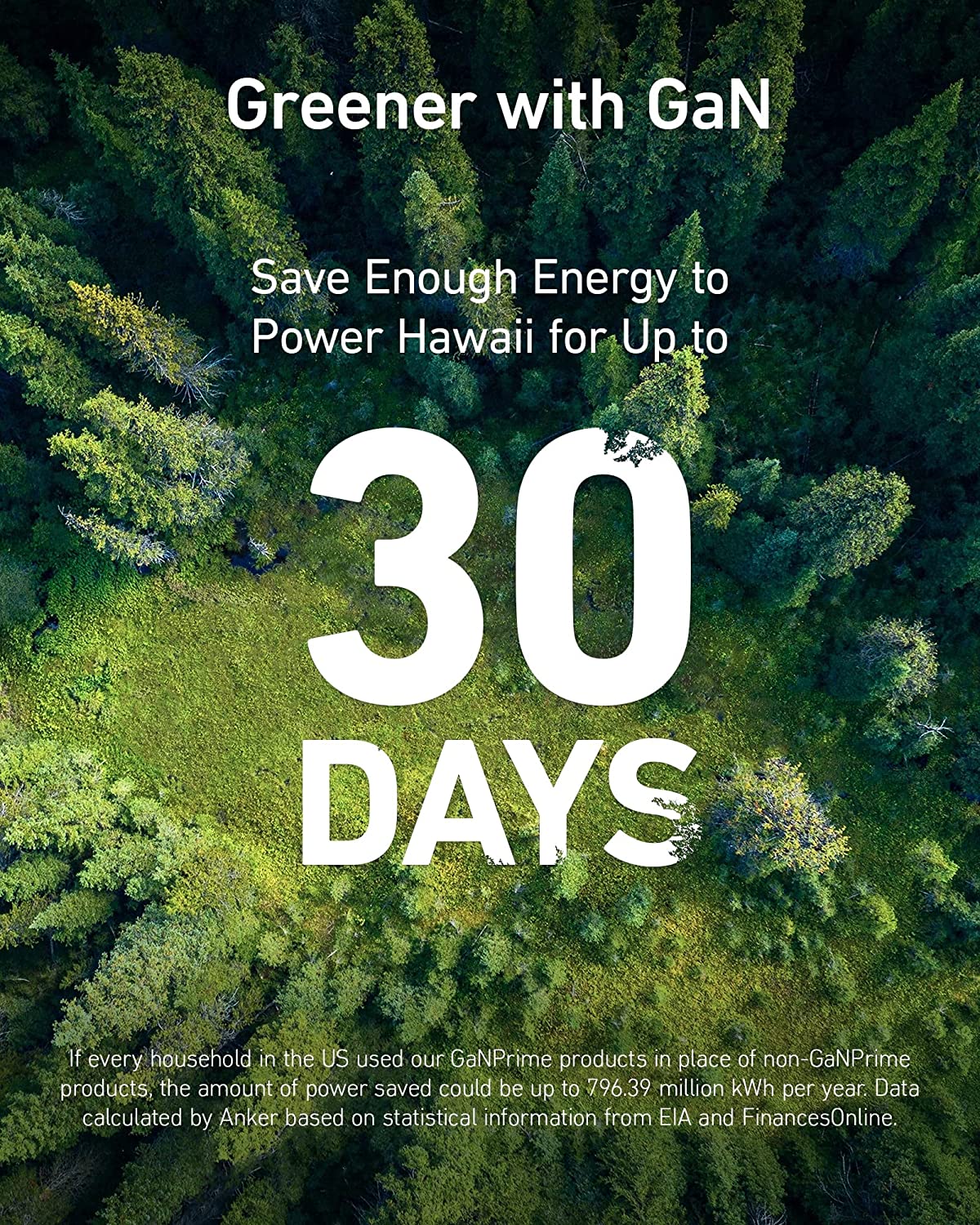 - Greener with GaN: If every household in the US used our GaNPrime products in place of non-GaNPrime products, the amount of power saved could be up to 796.39 million kWh per year—that’s enough energy to power Hawaii for a full month.