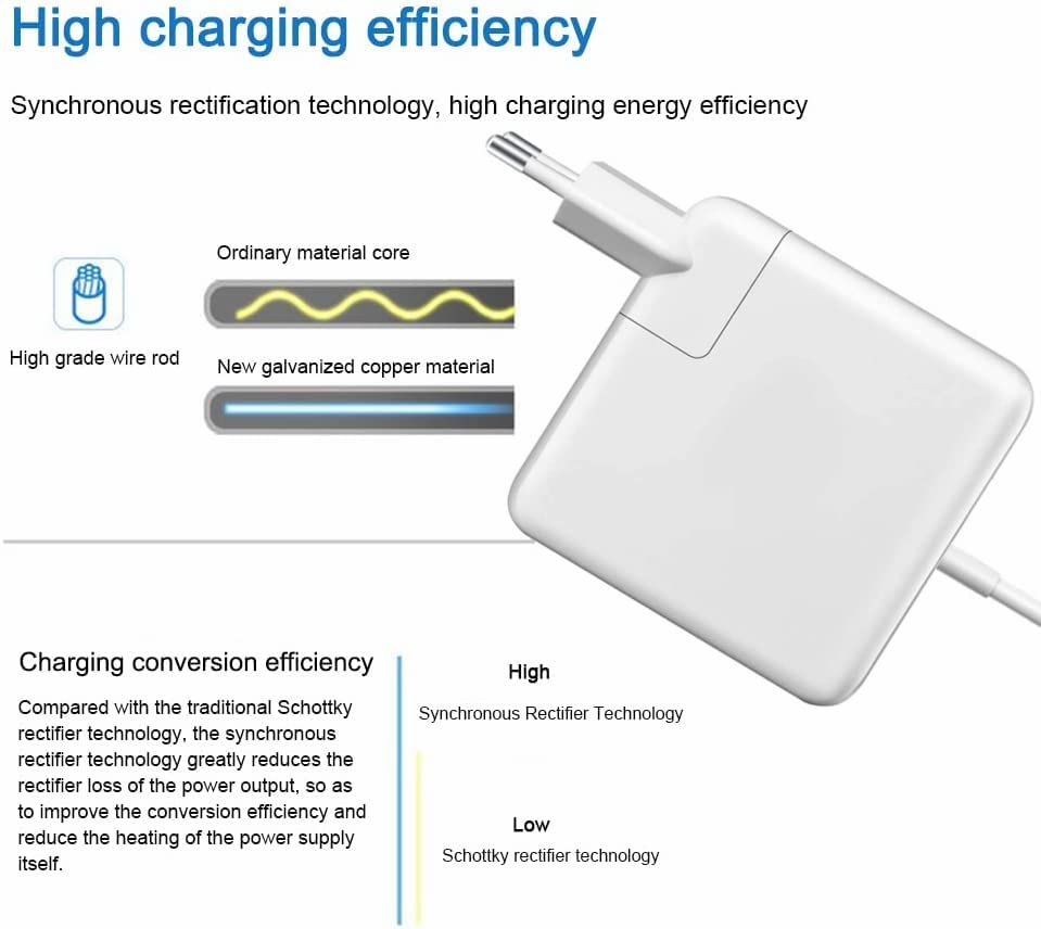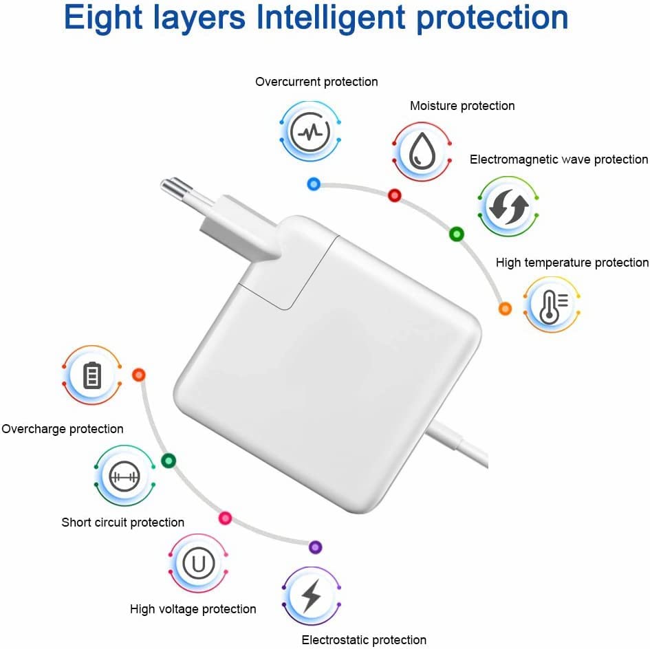 - Mac Book Pro charger made from the highest quality materials, MacBook Air charger contains several intelligent functions to protect against overcurrent, overvoltage, overload, short circuit protection and automatic recovery, protection against IV – incorrect voltage, SC – short circuit, IO – internal overheating, MacBook pro power supply with CE certification/FCC/RoHS.