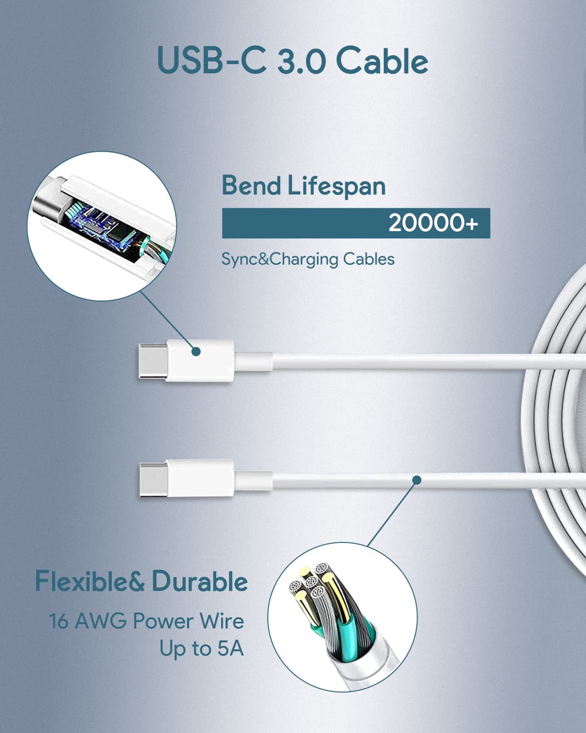 - Stronger Power Cable: There is a 6.6ft 5A USB C cable included, these 96w USB C chargers uses high-quality hardware which can guarantee the output of enough power in a variety of modes. The lifespan lasts more than 30,000 hours.