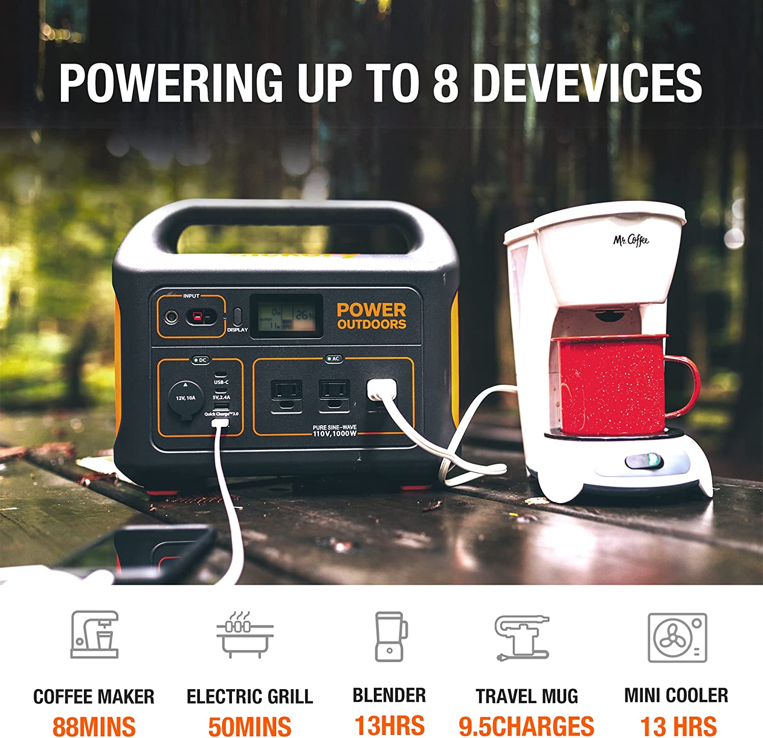 - MASSIVE CAPACITY & IMPRESSIVE ENDURANCE: With the 1000W wattage and 1002Wh capacity, this Explorer features 3 PURE SINE WAVE AC outlets, 2*USB-C, and 1*Quick Charge 3.0 port. It will power your full-size refrigerator, TV, mini cooler, electric grill, fan, and more for your outdoor and home needs.