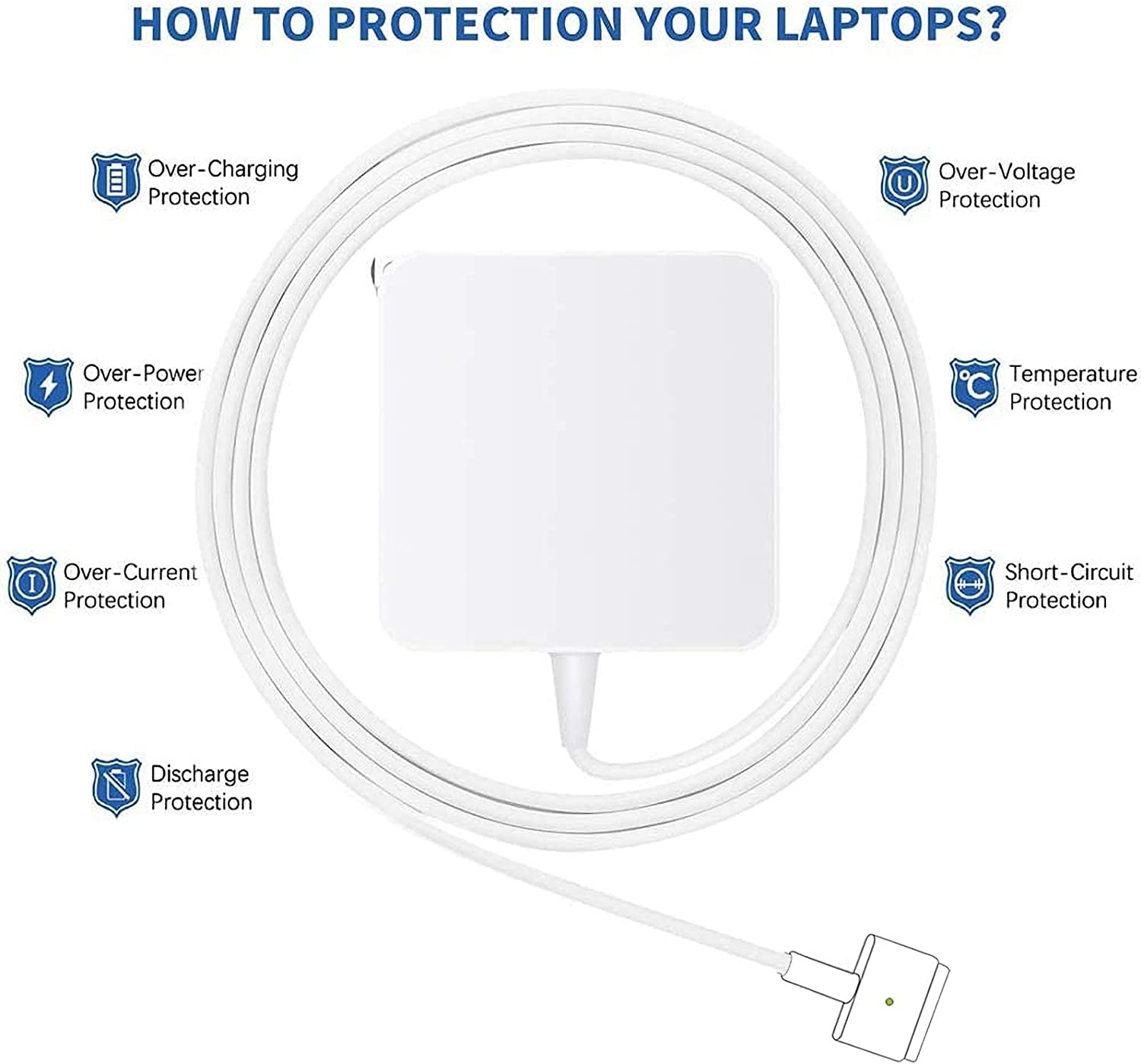 - Security Assurance: Replacement Mac Book Air chargers Manufactured with the highest quality materials and include multiple smart features safeguarding against over current, over voltage, over load, short-circuit protection and auto recovery, CE/FCC/RoHS certified