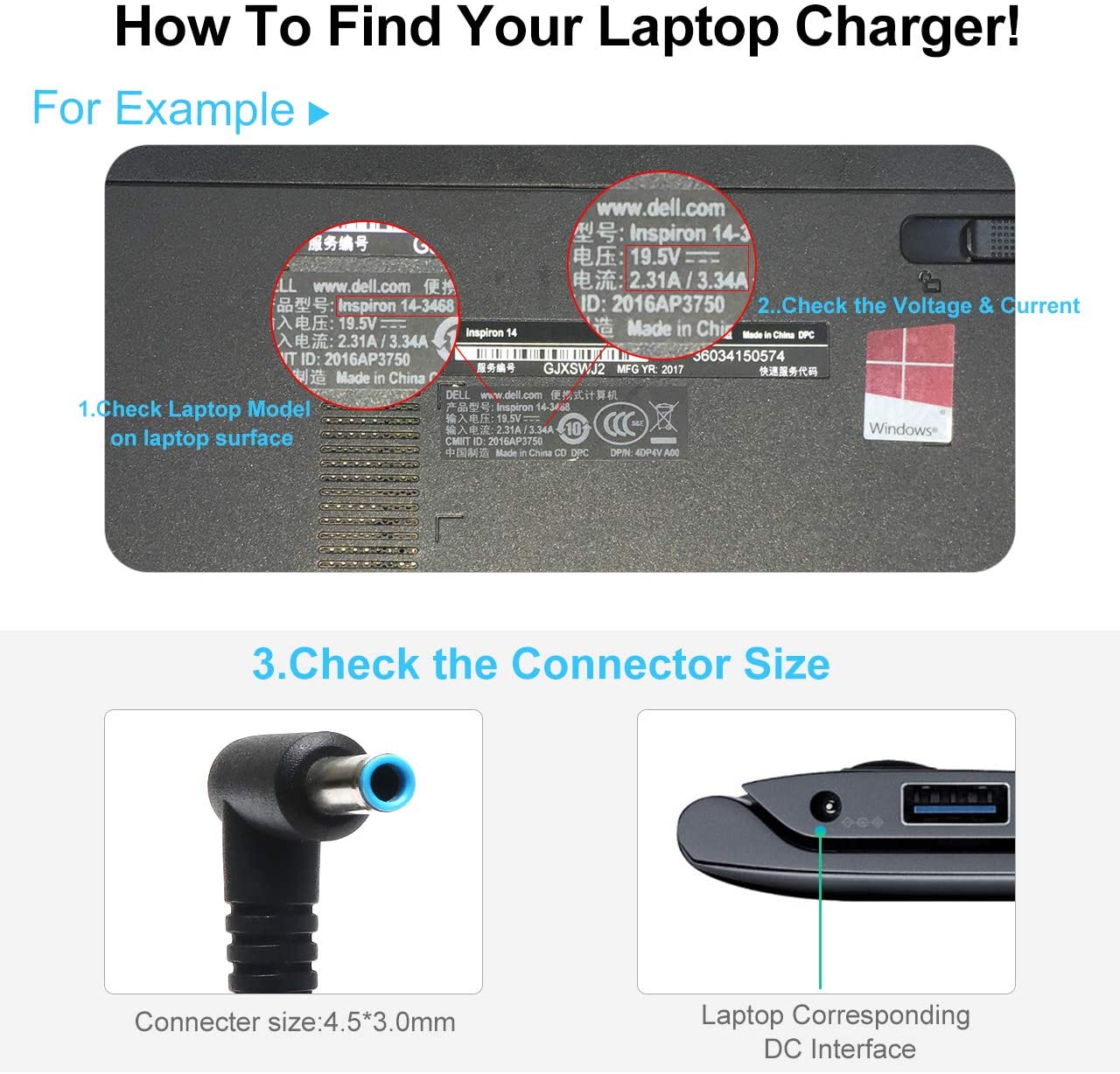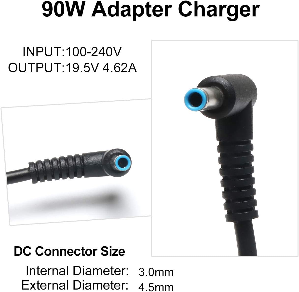New 19.5V 4.62A 90W AC Adapter Laptop Charger for HP Pavilion 11 14 15 17 HP Envy Touchsmart Sleekbook 15 17 M6 M7 Series,HP Spectre X360 13 15,HP Elitebook Folio 1040 [3.0mm – 4.5mm]
