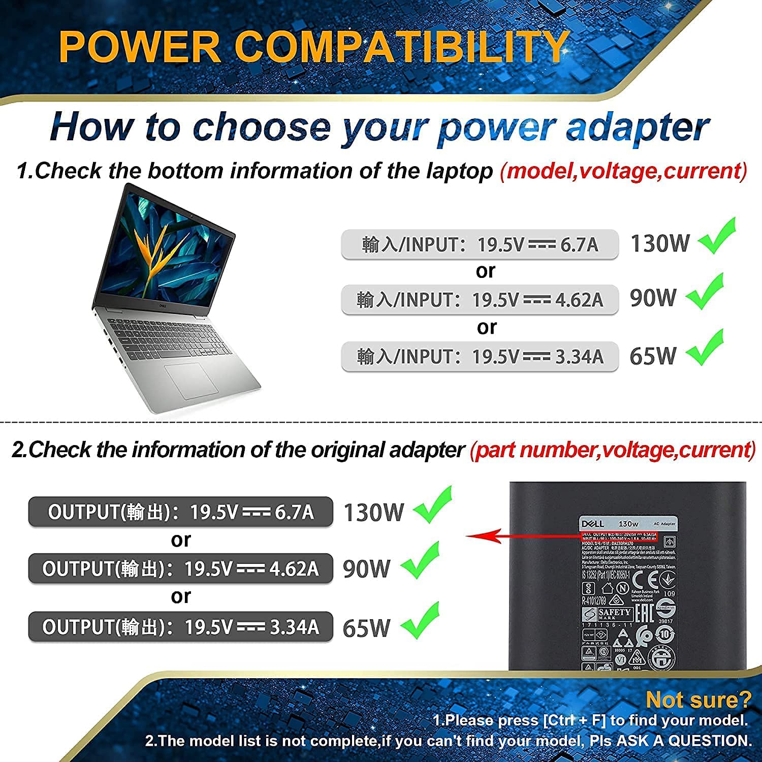 • Compatible With: Dell XPS 15 9530 9550 9560 Dell Inspiron 13 7347 13 7348 7459 Dell Precision 5520 Dell Precision Mobile Workstation 5510 M2800 M3800 Dell P/N: DA130PM130 HA130PM130 6TTY6 0RN7NW 0V363H Laptop Charger