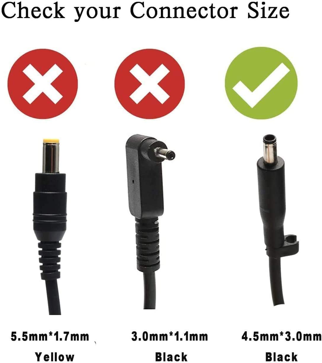 - Input: 100V-240V 50-60Hz, Output: 19.5V 6.67A 130W, Connecter Size: 4.5*3.0mm(look at the model of the interface in the second picture)