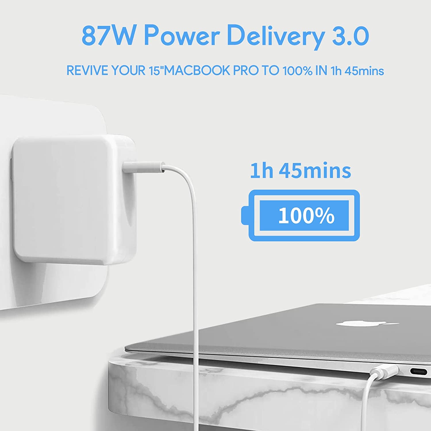 - Universal Compatibility: Fit for Mac book pro 13/15 inch(2016, 2017, 2018, 2019, 2020), Mac book 12 inch(2015, 2016, 2017), Air(2018, 2019, 2020), you can use this charger instead of 61W/30W/29W adapter for lower wattage. These 87W USB C power adapters also suits for other Type-C phones and new ipad pro, widely used for Type-C supported laptop.