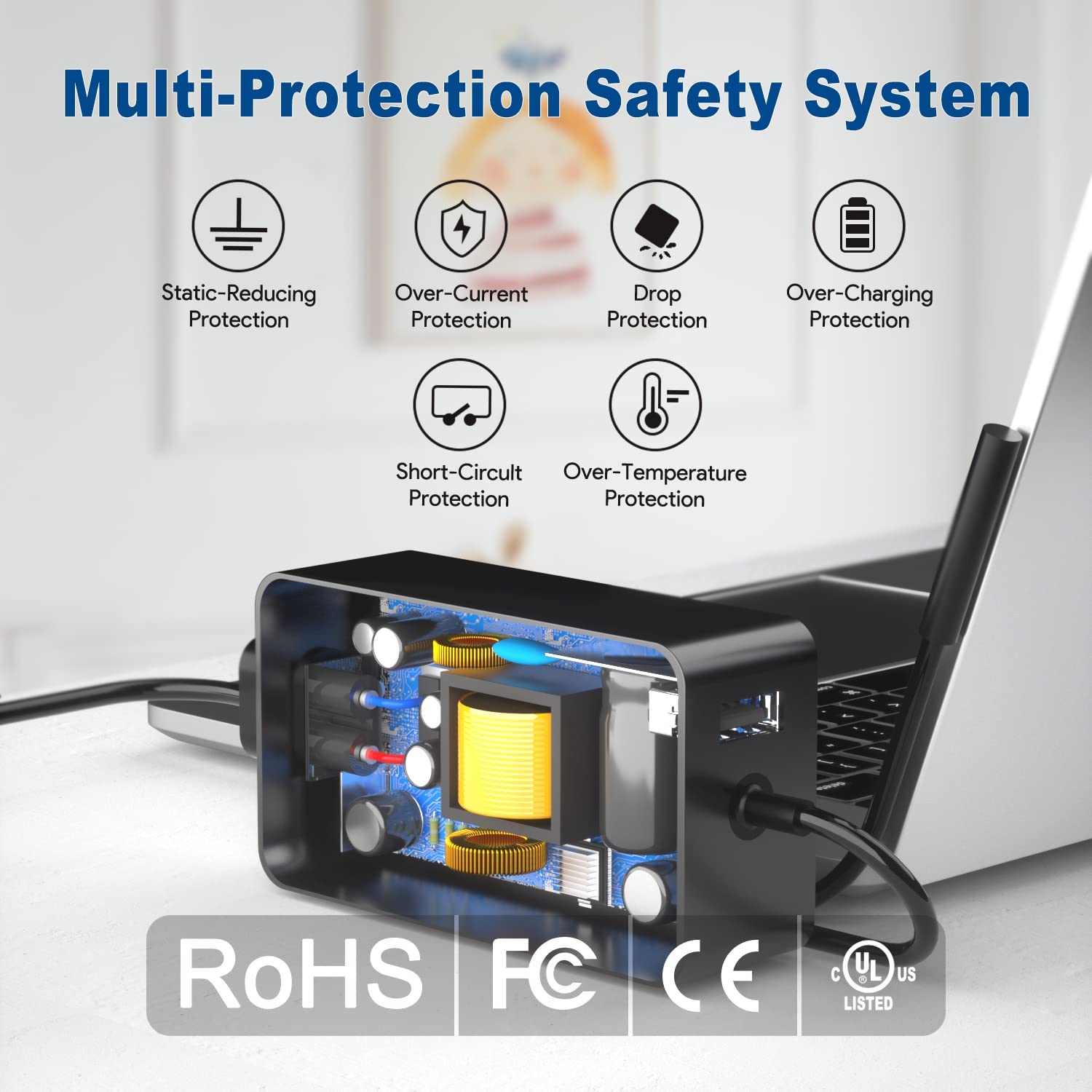 - Maximum Safety: Crafted with flame-resistant material and built-in intelligent chip, surface laptop charger ensures safe charging while offering overcurrent, overcharging, over voltage, and short circuit protection for your devices; In addition, Anti-Break and Tangle-free design prevents fraying or weakening of the cables over time.