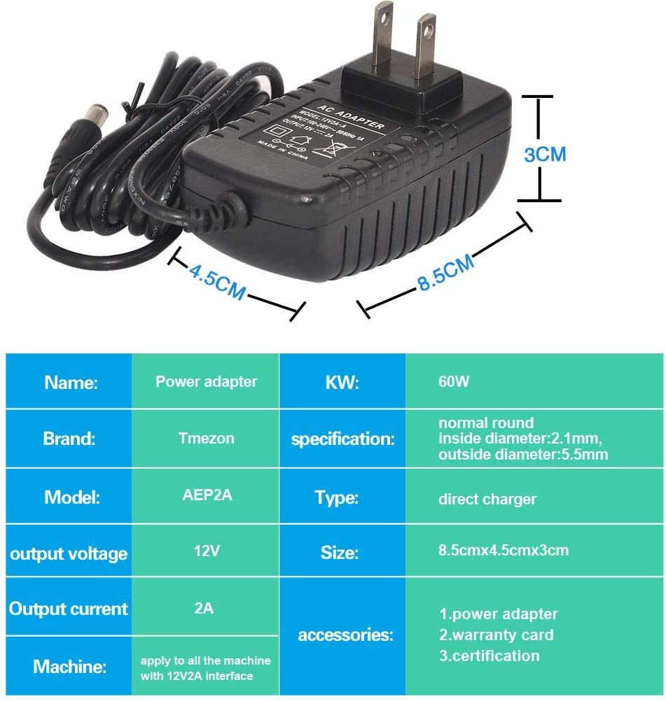 - 12v 2a Power Supply Wall Plug Extra Long 8 Foot Cord . Be aware others are not 8 Foot Cord.