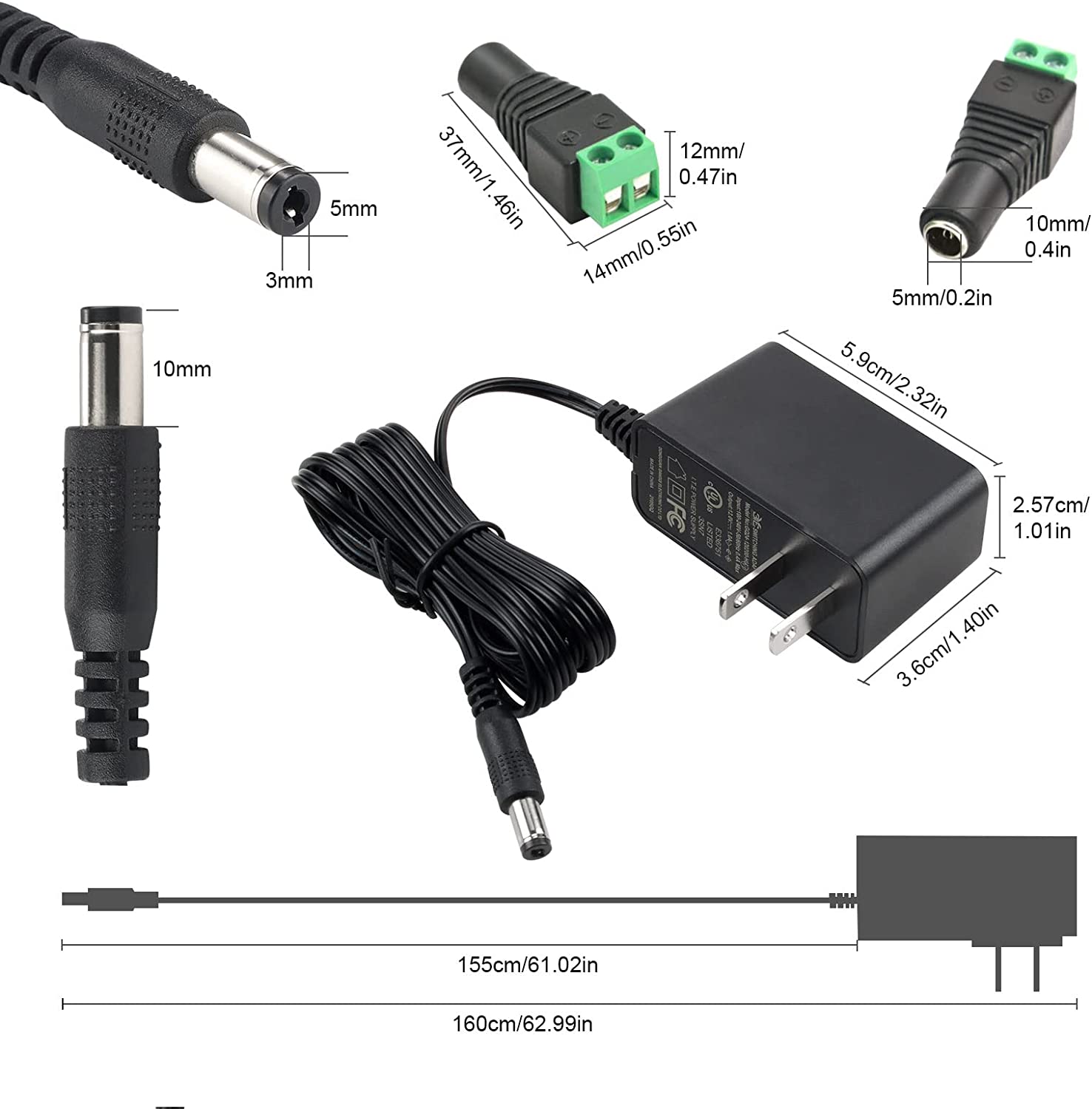 - DC plug connector external diameter is 5.5mm, Comes with a female DC barrel connector. You can easily screw wires on it without soldering.