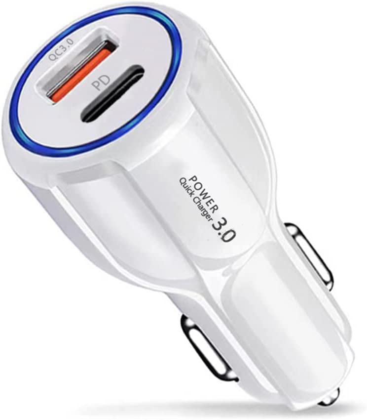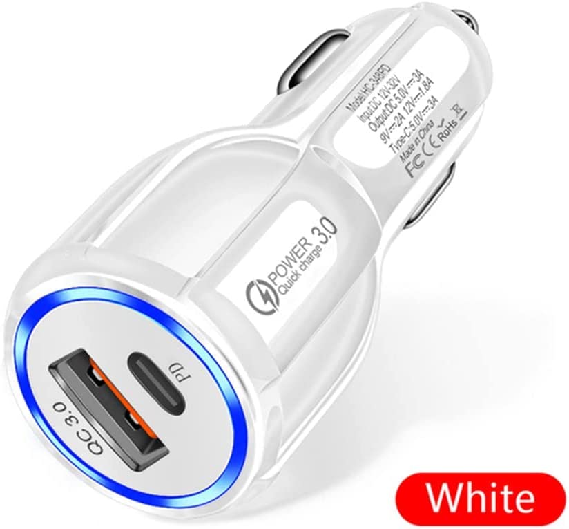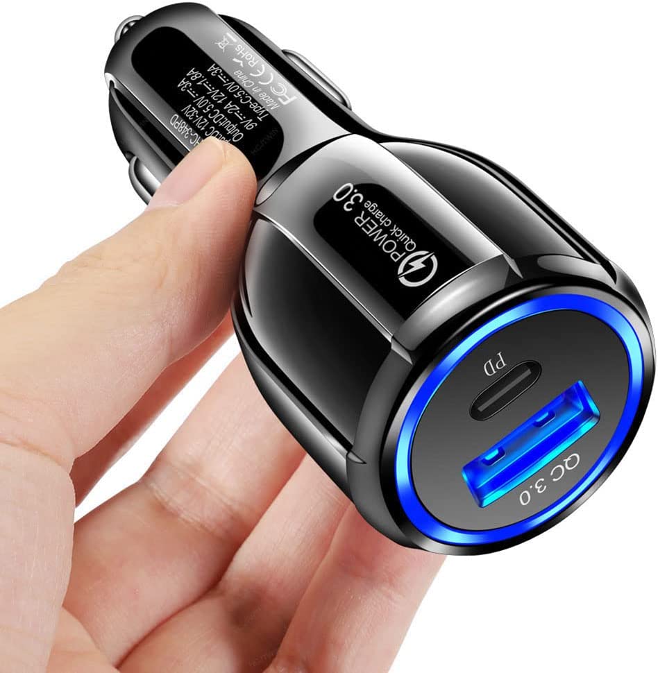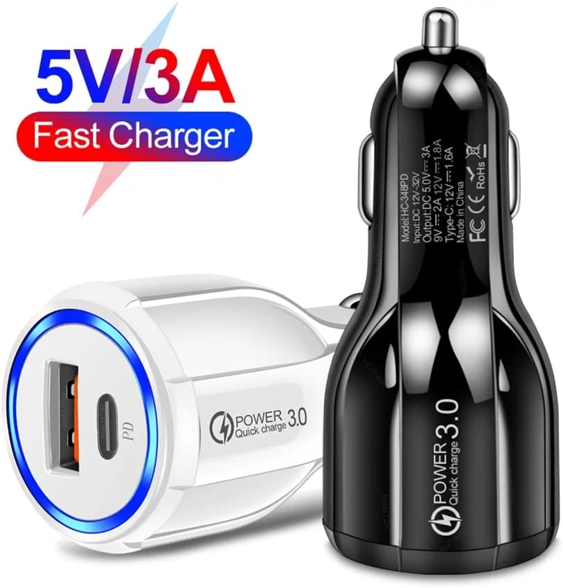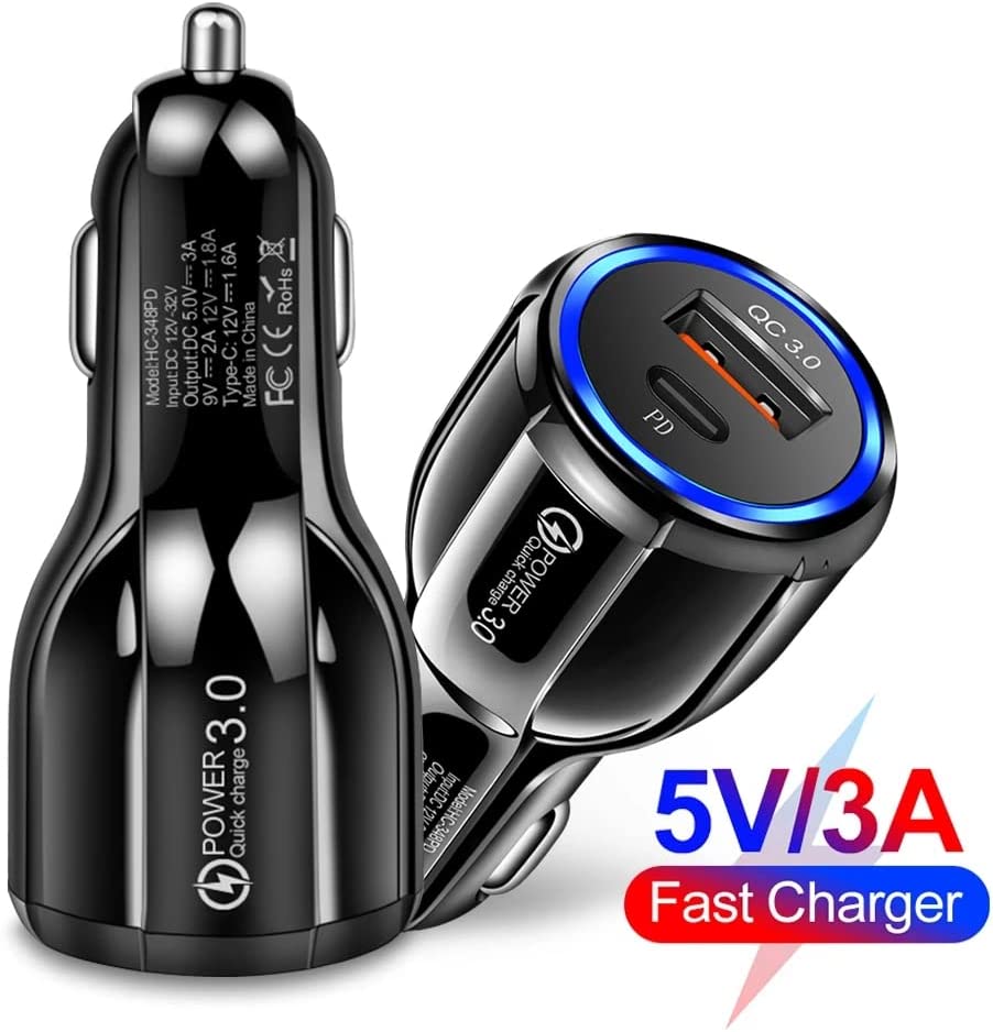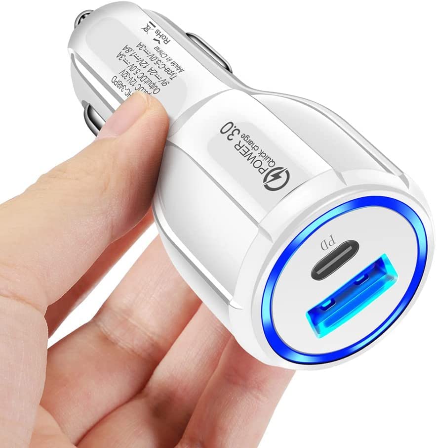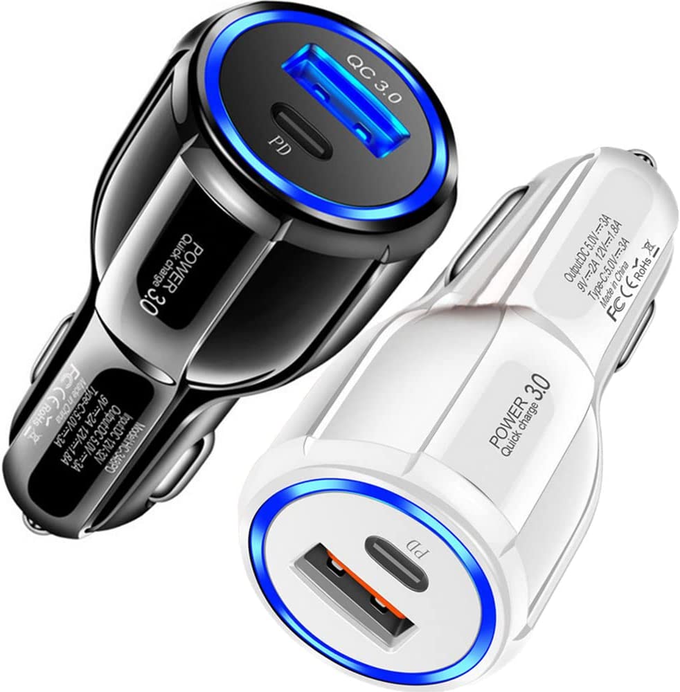 USB C Car Charger, PD 20W & QC18W Fast Car Charger Adapter, Dual Port USB Car Charger Compatible with iPhone 13/12/11/X/8/iPad, Galaxy S22/S21/S20/Note 20/10/9, Google Pixel, LG, HTC, Sony