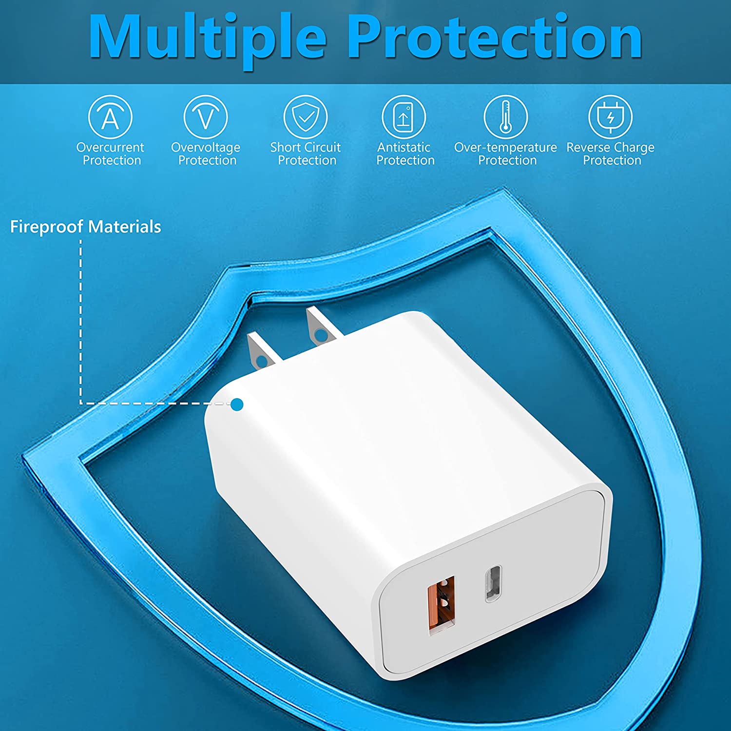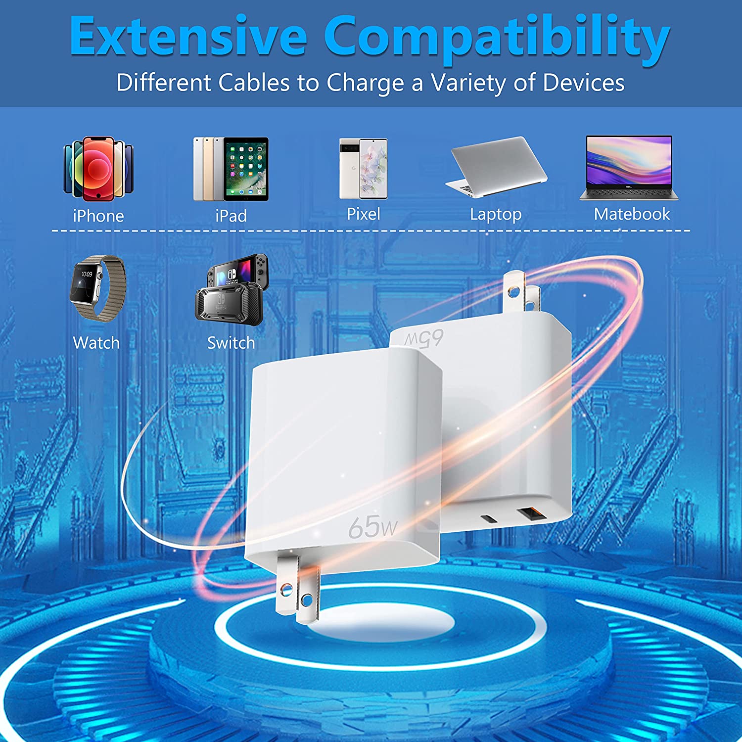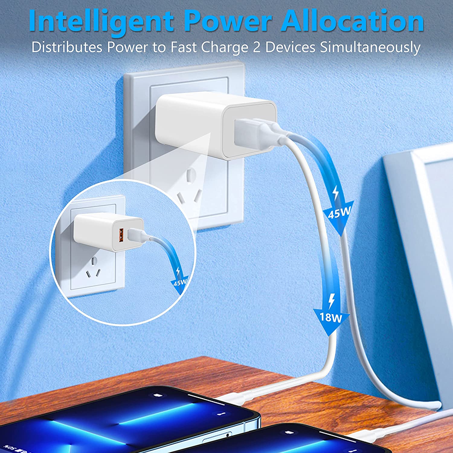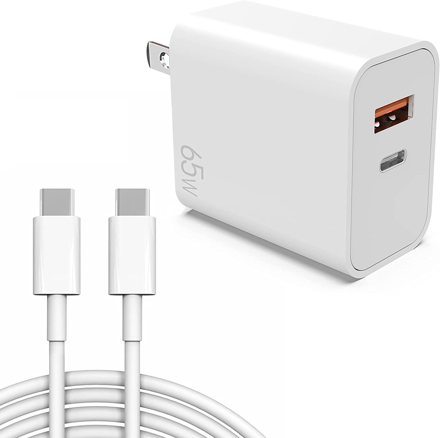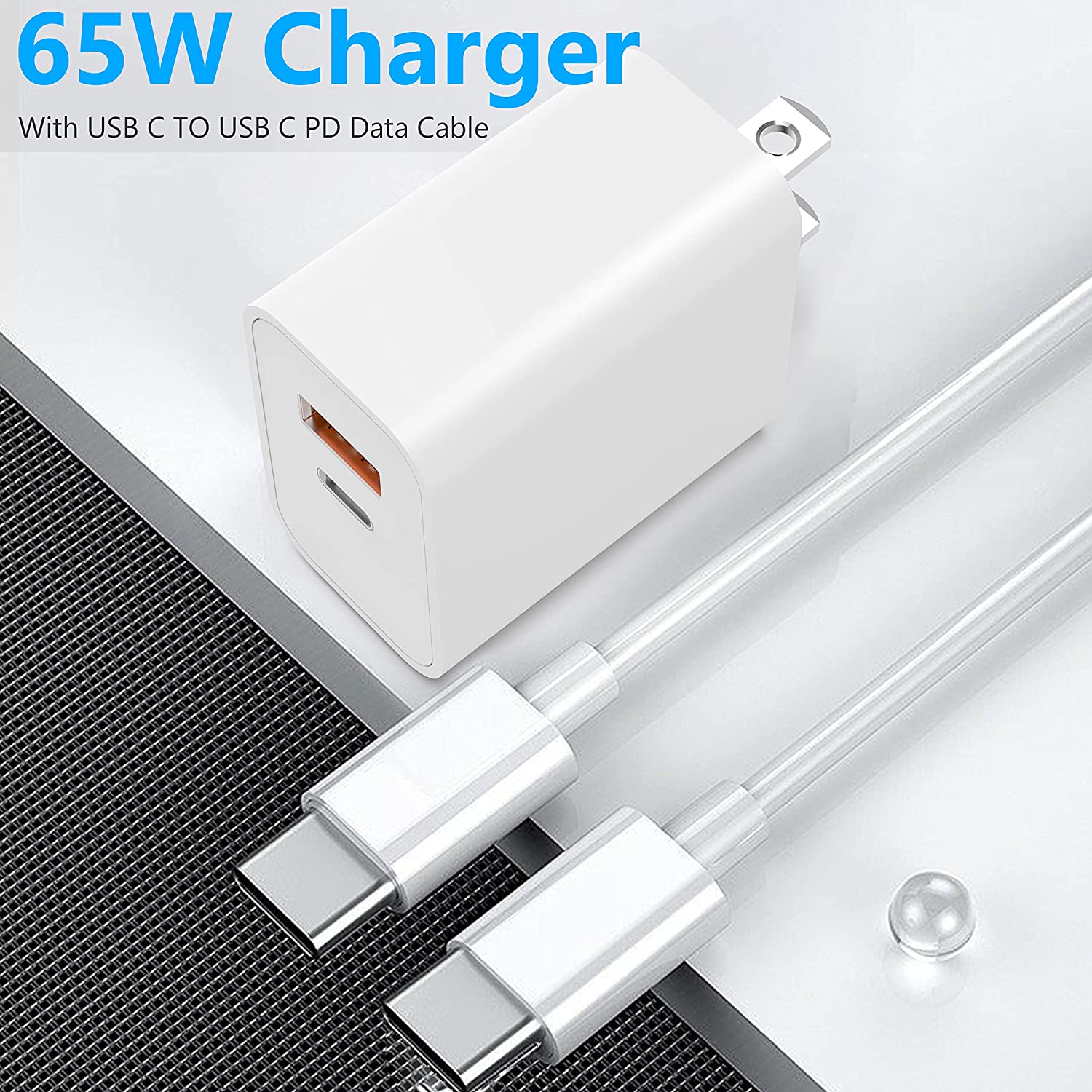 - 2 Power Ports & Data Cable: Cell phone wall chargers with 2 charging ports, USB-C port, and USB-A port. 65W output when using USB-C alone. When charging two devices at the same time, the output of USB-C is 45W and the output of USB-A is 18W.With 3.2ft PD USB C to USB C Charging Cable.