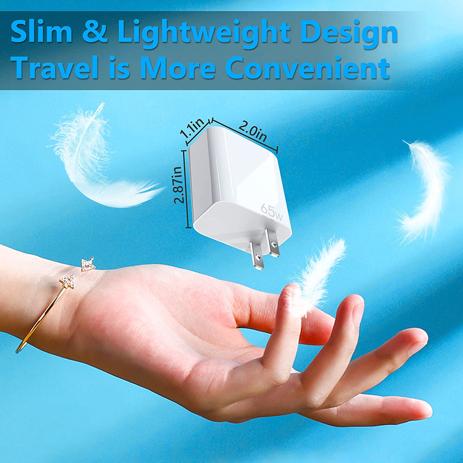 - Wall Charger Safe Use: It uses fireproof material and is a glossy PC fireproof plastic shell.65W charger with over-current, over-voltage, short-circuit, anti-static, over-temperature reverse charging, and other protection. Charging will not damage the phone battery.You can use it with confidence.