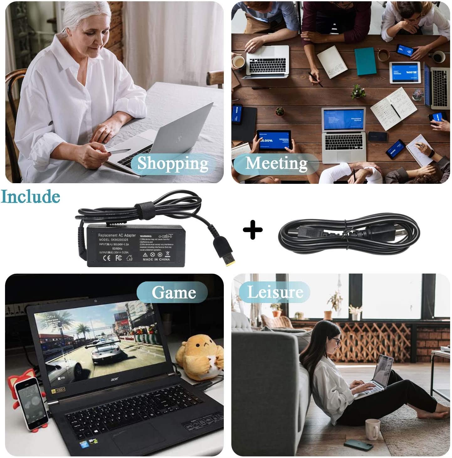 USB Tip 20V 2.25A 45W AC Power Supply Charger Adapter Cord for ADLX45NCC2A ADLX45NLC2A ADLX45NLC3 ADLX45NLC3A 0C19880 0B47030 36200246 36200245